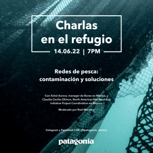 Este próximo 14 de junio en punto de las 19 Hs se llevará a cabo el Live “Redes de pesca, contaminación y soluciones” en las redes sociales de @patagonia_méxico; acompañados por Xchel Aurora, manager de Bureo en México, y Claudia Cecilia, coordinadora del North American Net Recycling Initiative Project Coordination en México.
