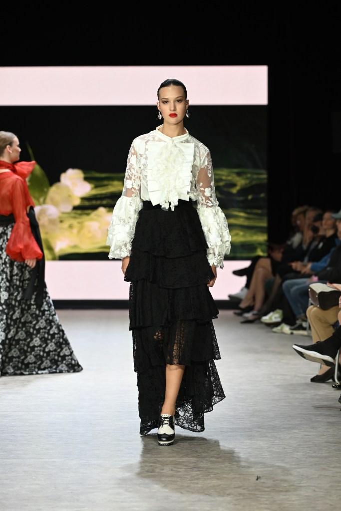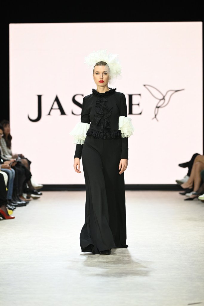 Fueron doce los looks de Jasive que recorrieron las pasarelas del Fashion Week en Vancouver. Todos con su estilo característico: prendas atemporales, llenas de olanes, seda, encajes y espectaculares tocados. La influencia de María Félix se hizo presente en los colores intensos tan característicos de la actriz, como el rojo y el negro, pero también en la gracia, porte, estilo y elegancia que resaltan la fuerza femenina haciendo honor así a su propia historia, experiencia y legado familiar.